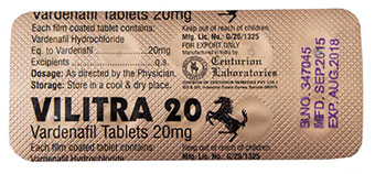 Vilitra20 — современный аналог брендовой левитры от индийской фармацевтической компании Centurion.  Содержит в своем составе варденафил в дозировке 20мг, который обеспечивает мощное усиление эрекции на протяжении 12 часов. Препарат также полностью совместим с алкоголем.